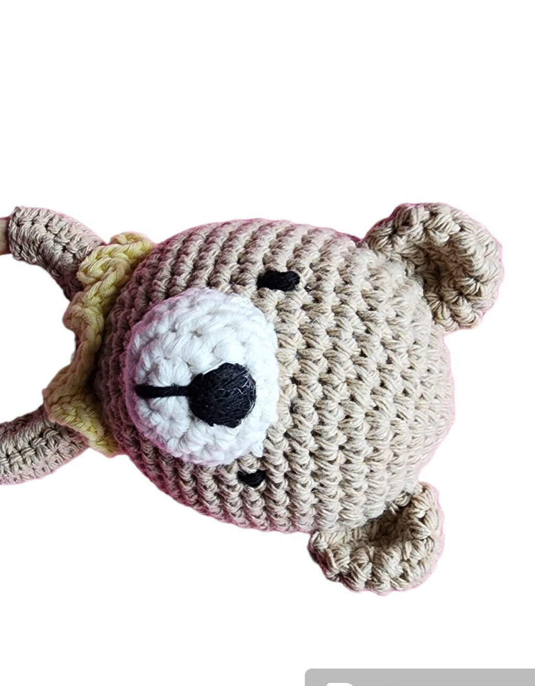 To make the set even more special, it also includes a handmade bear rattle teether. Soft, charming, and easy for little hands to hold, it adds a comforting sensory element that makes this set feel both practical and giftable. Together, these pieces create a lovely combination of warmth, style, and everyday functionality.